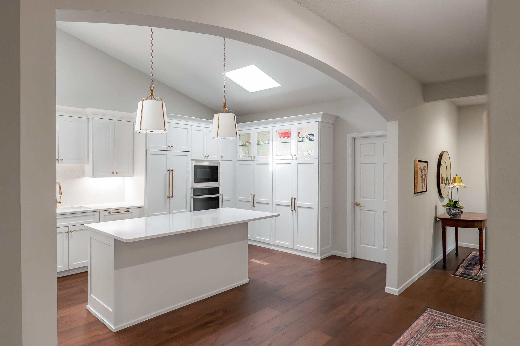 This kitchen remodel in Wayzata showcases a dramatic transformation, turning an outdated and closed-off space into a bright, modern, and open kitchen. The project involved a complete overhaul of the original layout, materials, and design elements, resulting in a contemporary and functional kitchen that is both aesthetically pleasing and highly practical.